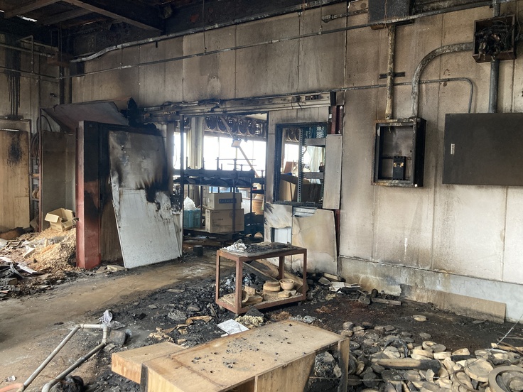 かろうじて燃え残った未完成の製品もきれいに片付けました