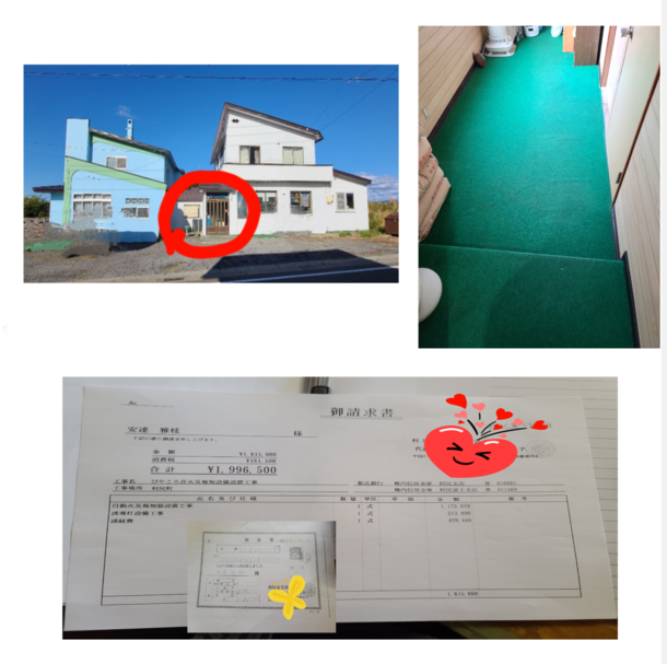 ペットと泊まれる宿と猫カフェの火災報知器工事終了して消防認可と工事請求書!
