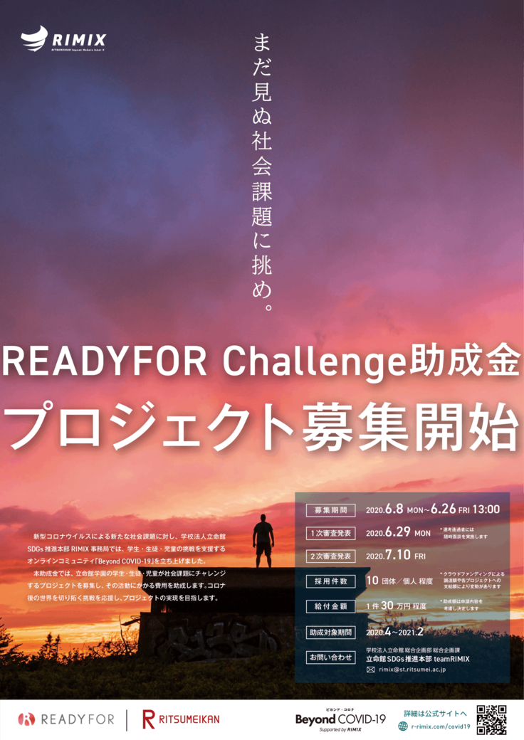本クラウドファンディングを通じてご支援いただいた資金をもとにした「READYFOR Challenge 助成金」。