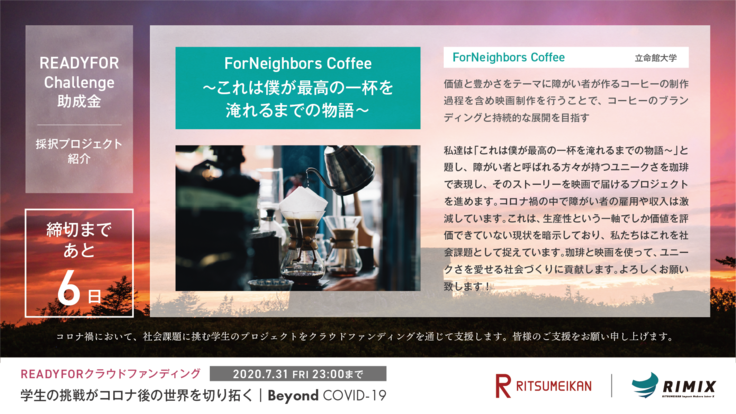 これは僕が最高の一杯を淹れるまでの物語 / ForNeighbors Coffee(立命館大学)