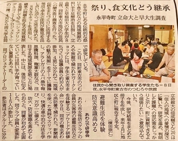 シェアリングエコノミー班が、6月8日に早稲田大学と合同で行ったワークショップの様子を福井新聞に掲載していただきました!