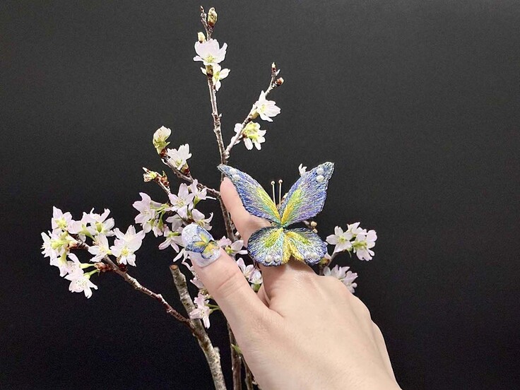 【立体刺繡のアートジュエリー世界に一匹の蝶(仮名)動画】