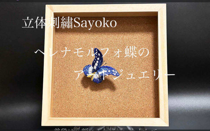 立体刺繡Sayokoの作品集+ヘレナモルフォ蝶のデジタル蝶イヤリング