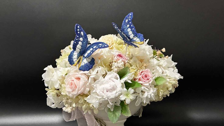 立体刺繡Sayokoの作品集+ヘレナモルフォ蝶のデジタル蝶イヤリング