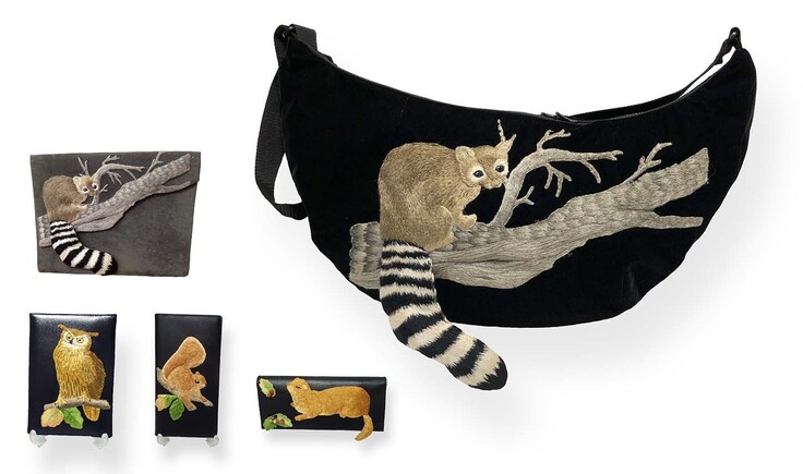 これまでにフクロウやリス、ミンクなど、さまざまな動物たちが手帳や財布などの形を変えて登場し、今ではジーンズのジャケットにとまり、一緒に散歩を楽しんでいます。