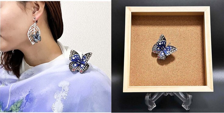 さらに今回のプロジェクト期間中、2025年 日本IDPAアワード国際パイオニアデザイン賞にて、国蝶「オオムラサキ」をモチーフとした立体刺繍作品が、アートジュエリーとしてシルバー賞を受賞。