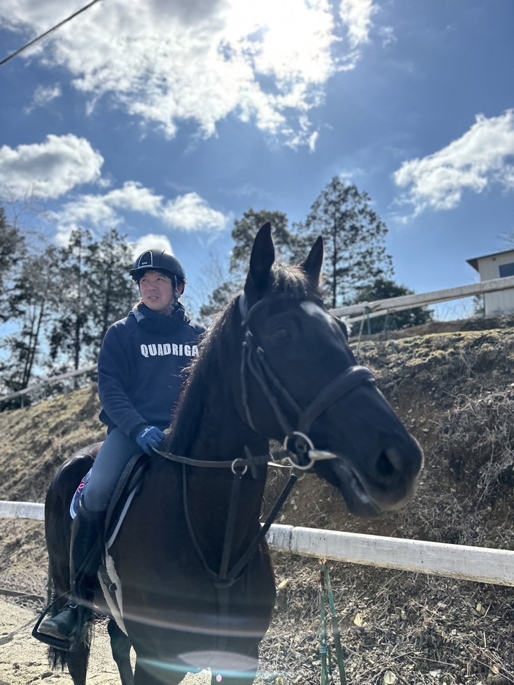 父ディープインパクト・母シャンロッサの産駒で、7歳になるセン馬です。通算成績は16戦6勝しており、獲得賞金は7812万円です!障害レースにも出走していました!怪我で引退しましたが、今年の2月より様子をみながらリトレーニングを開始しています!障害を飛ぶセンスがあるので、障害馬術競技出場に向けて日々頑張っています!普段は穏やかで人懐っこい面があり、手入れも大人しく可愛いです🐴4月のRRC大会(引退競走馬杯)にも出場予定ですので応援よろしくお願いいたします!