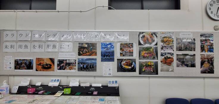 郡中支店ロビーにクラウドファンディングの案内を展示頂きました。