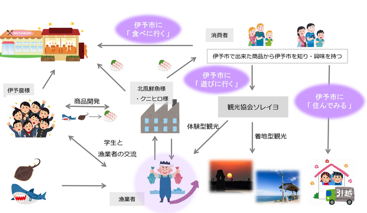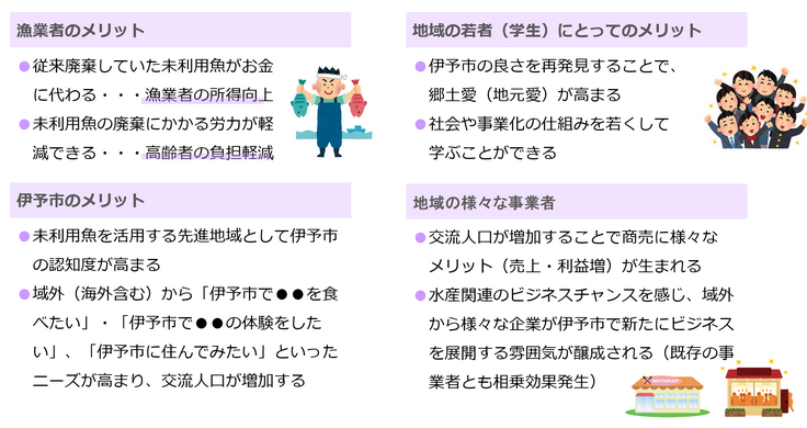 将来、「未利用魚を価値のある利用魚に」をキーワードに、地域の様々な事業者(飲食店、観光施設、食品加工会社、旅行業者、漁業者、学生などの若者など)が地域で様々な取り組みを展開することで、多くの人に
