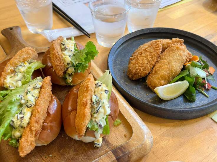 今回、高校生が考案したサメバーガーと油淋エイをマルブンの眞鍋会長に試食いただいたところ「美味しい」「これは売れる」と太鼓判をいただきました!!