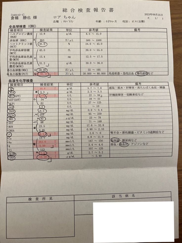 昨日いただいた血液検査結果です。