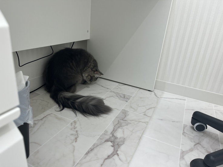 ロアは家にいる時から獲物をカーテンや隅に隠して狙うスタイルだったのですが、そのスタイルは変えてないようで🐟
