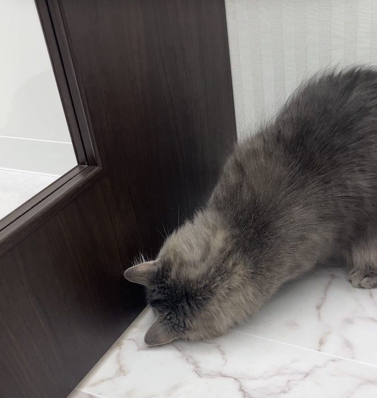 ドアの隙間に入り込んだ毛玉をただ必死に取ろうとしているだけでなんと可愛い……💓💓