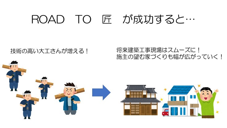 大工さんを育成するシステムも今の時代に合った形で環境を整える必要があり、ROAD TO 匠は全国で同じ想いを抱く業界に向けて、良い事例になればと思っています。