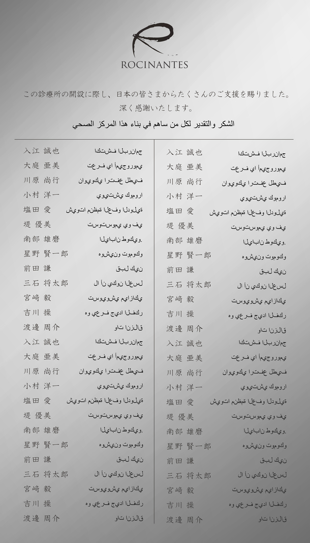 改めて、本プロジェクトならびにロシナンテスにあたたかいご支援を賜りまして誠にありがとうございました。