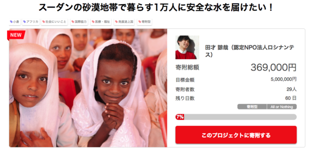 タイトル:スーダンの砂漠地帯で暮らす1万人に安全な水を届けたい!