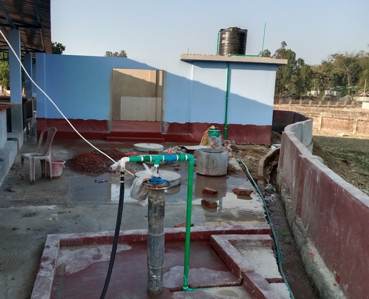 衛生施設の上には水をためておくタンクを設置