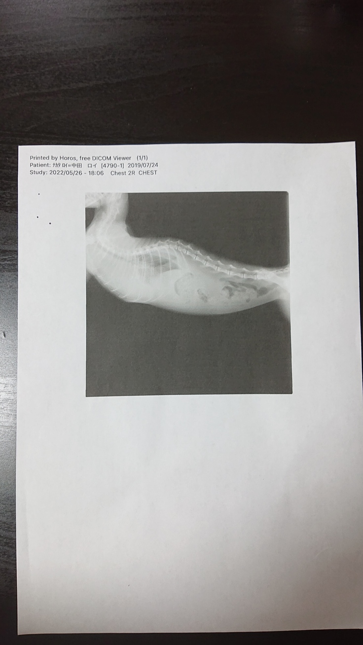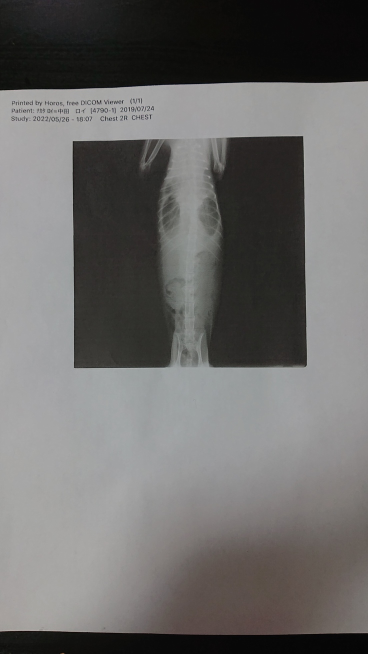 その後しばらく様子を見たものの食欲は少し戻りましたが以前程元気にはなりませんでした。そして呼吸を苦しそうにするようになったので慌てて病院に連れていきました。そこでレントゲンを撮ると胸とお腹に水が溜まっており、かなり危険な状態だと先生から告げられました。