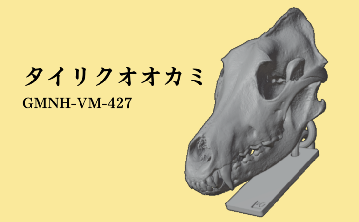 これまでのラインナップで未登場だった犬系の頭骨として、群馬県立自然史博物館のタイリクオオカミが登場!イヌ・ネコと一括りにされがちですが、歯やあごの形から機能的な違いを見ることができるセットになります。
