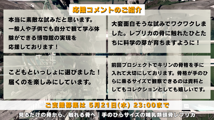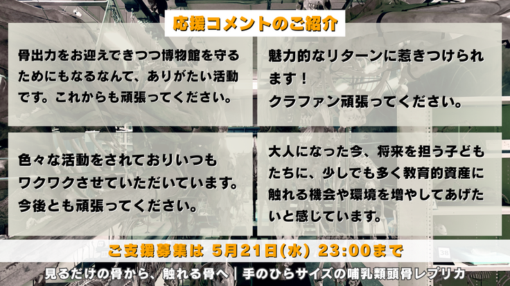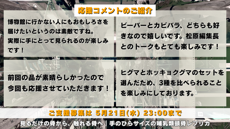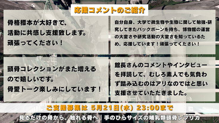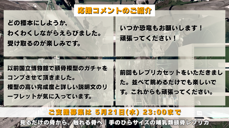 こんなにもあたたかい応援のコメントと、「博物館は、標本は面白い!」と思ってくださる皆様がいれば、業界の未来もきっと明るくなるのではないかと勇気づけられます。本当にありがとうございます。