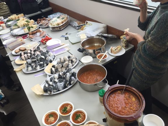 会場は、定員50名ほどの会議室だったのですが、熱気でいっぱいになるほどの大盛況。手作りのおにぎりやスープ、デザートなども並び、終始にぎやかな笑い声に包まれたアットホームな雰囲気の会になりました。
