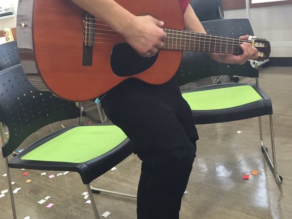 受賞者からは、川岸生男さん、雀遊さん、河野開司さん、コスモポリタン ロッカリアンさんが参加。川岸さんは、作品のイメージそのままの静かで芯のある雰囲気が印象的でした。雀遊さんは、「春子さん」と二人で作品の一部を朗読。河野さんは、この日のために用意してくれたちょっと自虐的なスピーチで会場を沸かせてくれました。そして、コスモポリタン ロッカリアンさんは自作曲を生演奏。ちなみに、「ロッカリアン」とは、「ロックに属している人」という意味だそう。やはりロックは国境を超えた存在なんですね!