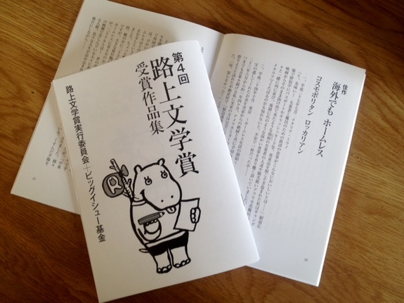 そして!! 「第4回路上文学賞 受賞作品集」の冊子もようやく完成し、この日初めて配布することができました。この冊子は、ビッグイシュー販売者を通して2月1日から無料で配布しております。冊数に限りがあり、すべての販売者が作品集を持参しているとは限りませんので、お近くの販売者とご相談頂けたらと思います。この冊子が販売者との交流や雑誌購読のきっかけになれば幸いです。
