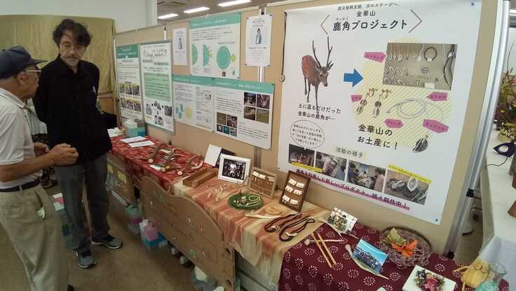 通常は一般社団法人サステナブルデザイン工房と共同ブースを出展し、私たちが製作した鹿角製品の一部を展示しています。