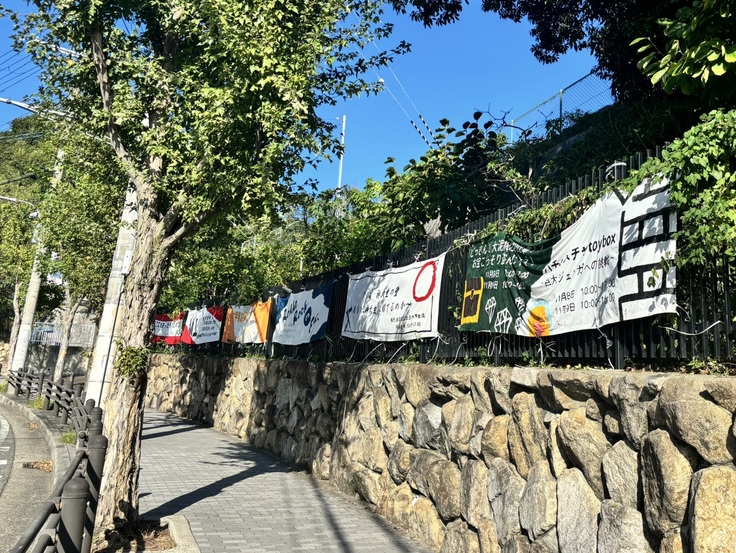 先日、通学路として多くの学生が通る六甲台第2キャンパスの道沿いに横断幕を設置いたしました!