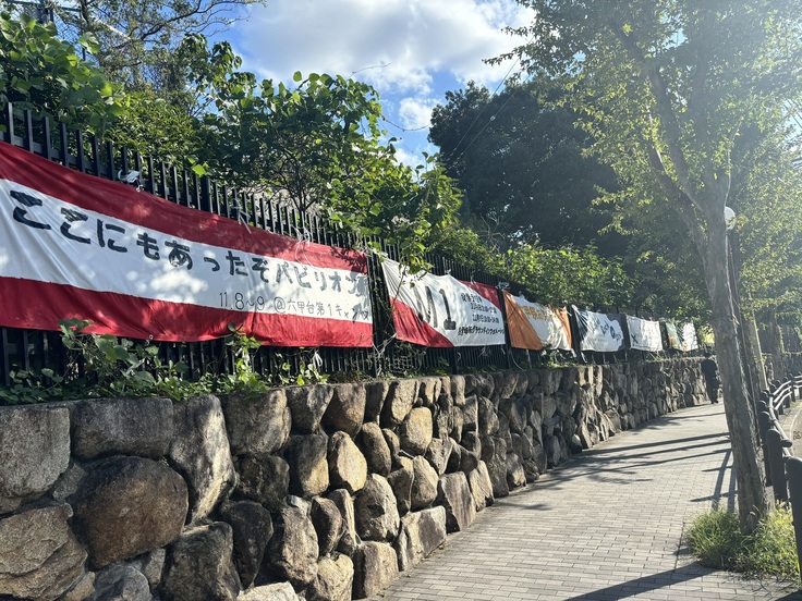 こちらの横断幕は六甲祭の企画を紹介するもので、六甲祭実行委員会のメンバーが夏休みの間に制作を進めていました。