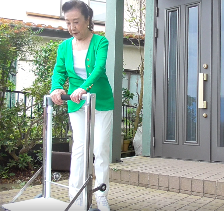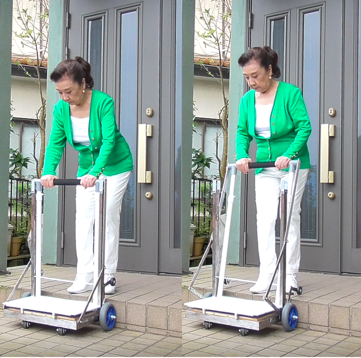 近年、キャリーケースは滑らかな走行性と耐久性を兼ねそろえた高品質な商品が多く、平地における直立移動がより楽になりました。しかし、点字ブロックや視覚障害者誘導ブロックなど路面の凹凸を乗り越えるためにはキャリーケースを傾けてハンドルを引く、または一瞬持ち上げて乗り越えたりすることもあります。また、多少粗めの路面上における直立移動もやはり困難をきたす場合もあります。