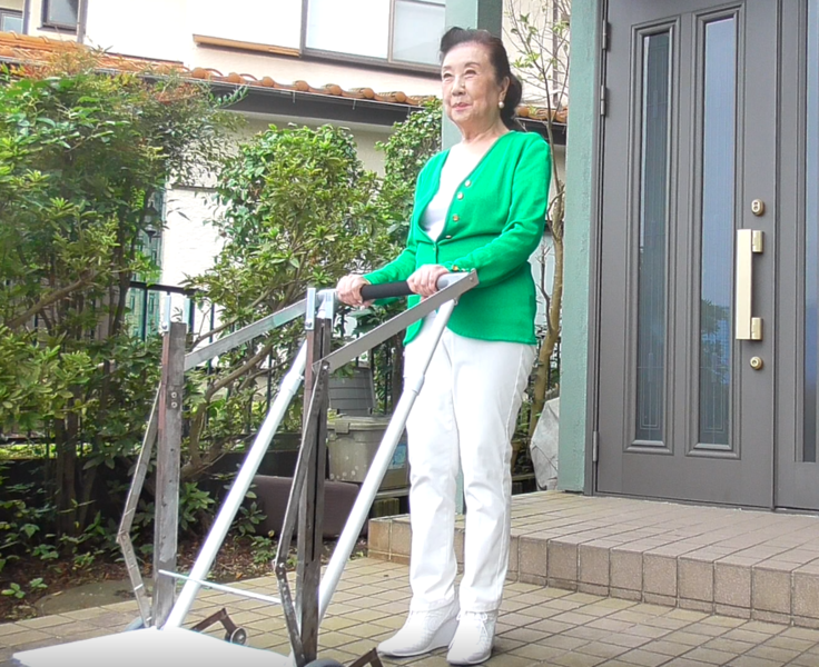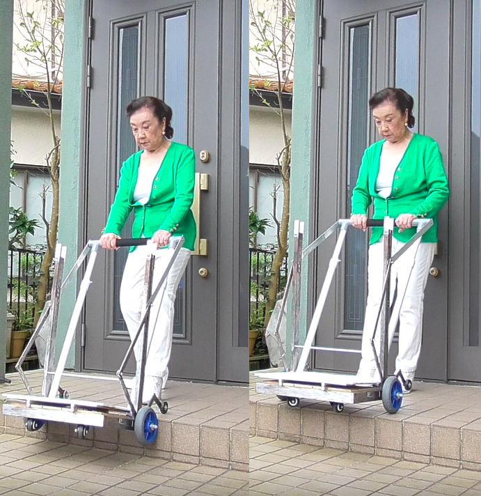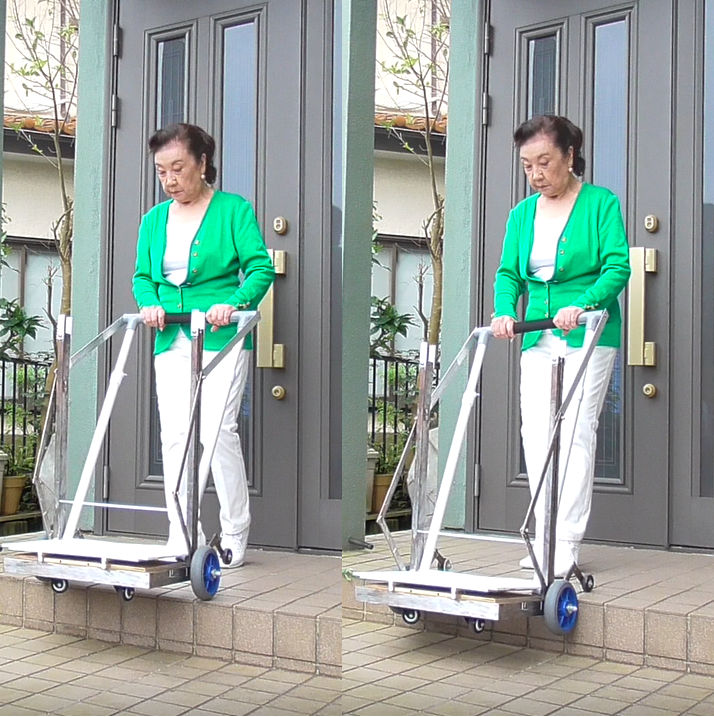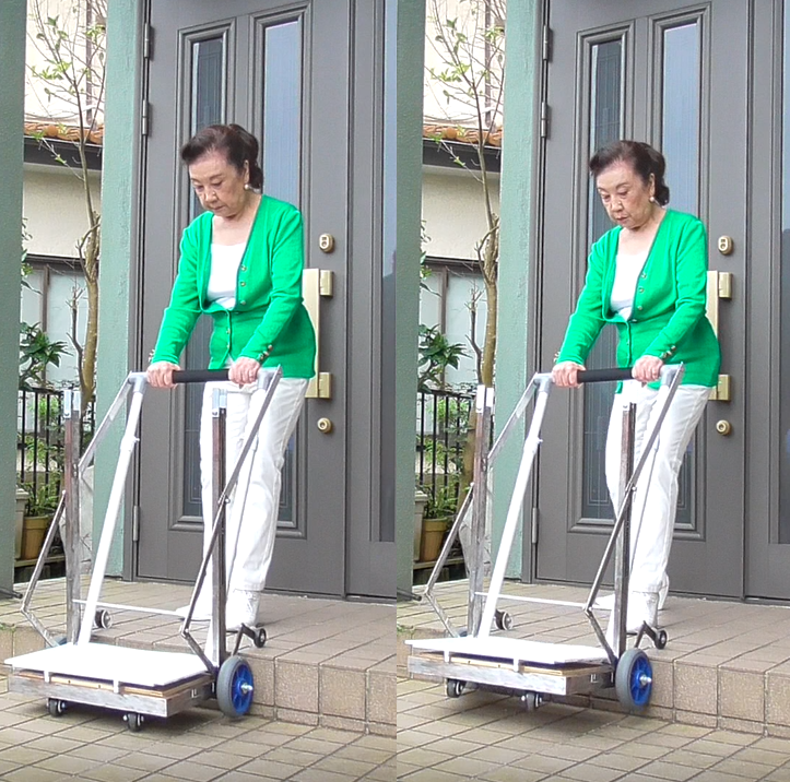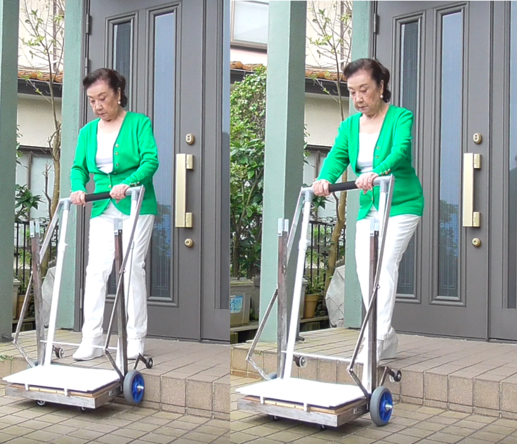 この計画は、かつて私の息子が思いも寄らない難病で車椅子生活を余儀なくされていたときに、外出時の介助の大変さを身をもって経験したことから、私の協力者の意見を交えながら基本的なシステムを完成させたものです。このシステムにより、段差を昇降する際の介助者の負担が大幅に軽減できます。