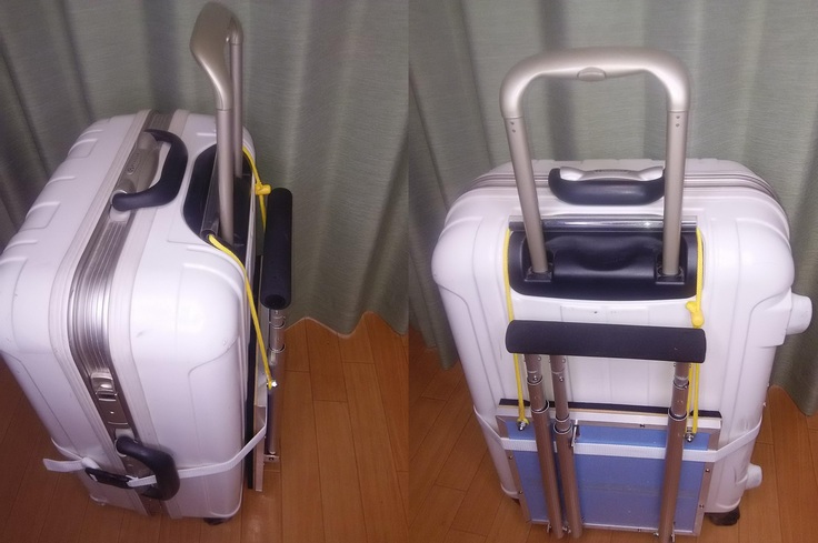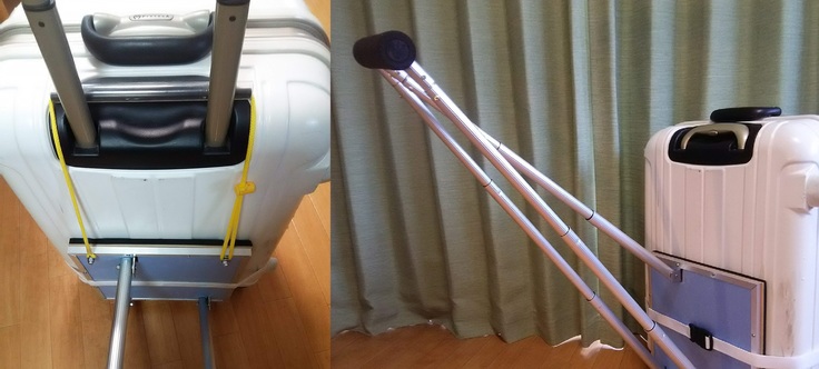 簡単取付!キャリーケース専用3脚ハンドル☆2個連結で楽々直立移動♪
