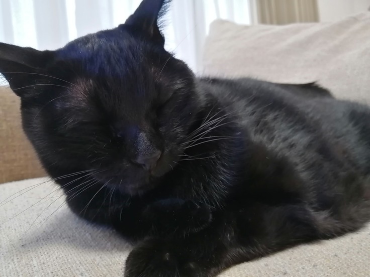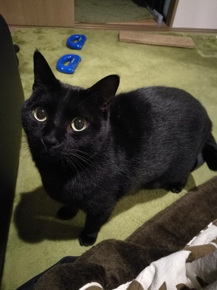 黒猫のルート(7歳)と暮らしています角 美穂と申します。小さい頃から猫と共に生活してきたので、猫を保護するようになりました。