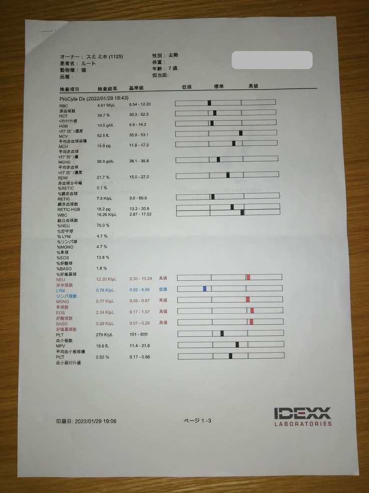 獣医さんの診断でルートがリンパ腫、いわゆる”がん”である事を伝えられ状態はステージ3で、余命は1~3ヶ月であると告げられました。