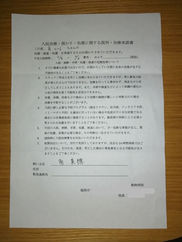 獣医さんとしっかり話し合い、大まかなスケジュールを確認しました。