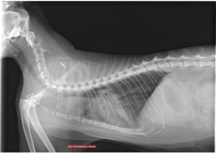 今年の1月頃から少しずつルートの元気が無くなり、体を撫でていると徐々に骨の感触が感じられれました。ルートはもともとふっくらしていたので年齢と共に瘦せてきたかなと思いましたが、やっぱり元気がないので病院で検査をすると、「胸部に水が溜まっていて早めに水を抜かないと生命に危険がある」との事でした。すぐに胸水を抜いてもらい、原因を探るために、より精密な検査が行える病院を紹介してもらいました。