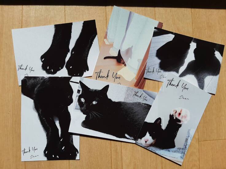 ポストカードはルートメインで、マグネットは うちの保護猫3匹の物をオリジナルで作りました。