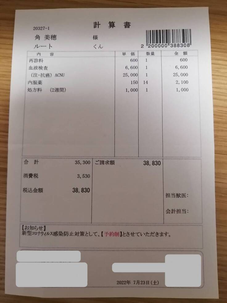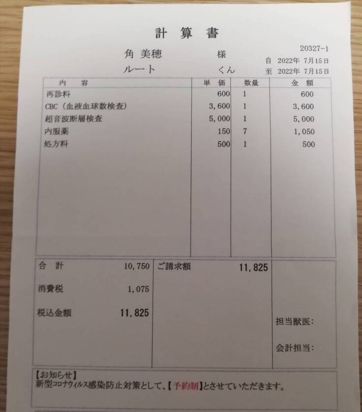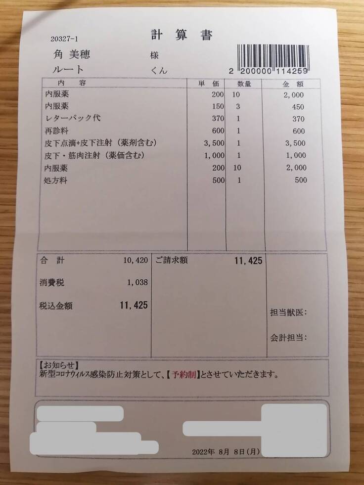 新型コロナウイルスのせいで動物病院にも行けず、やっと本日行くことができました。