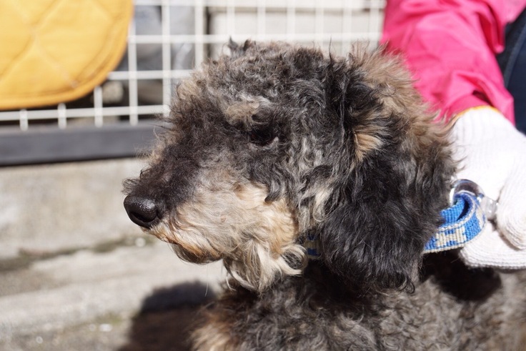 すでに先住犬の部長が居ましたので、部長との相性が第一で、でも私達の心配はよそに部長はすんなりちりめんを妹として受け入れました。ちりめんを迎えたことでぴねすのグループLINEに加えていただき、そこではいろんな状況でのレスキューの話しが飛び交い、特にちょうどちりめんがわが家に来た頃に間柴さんを悩ませていた、トイプードルのアンちゃん、京都八幡の多頭飼育崩壊は私にとっても本当に衝撃的な出来事でした。