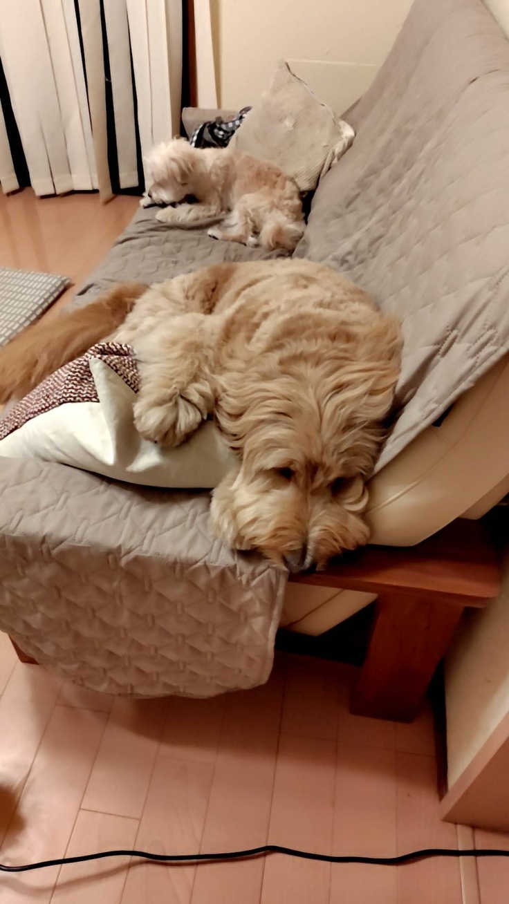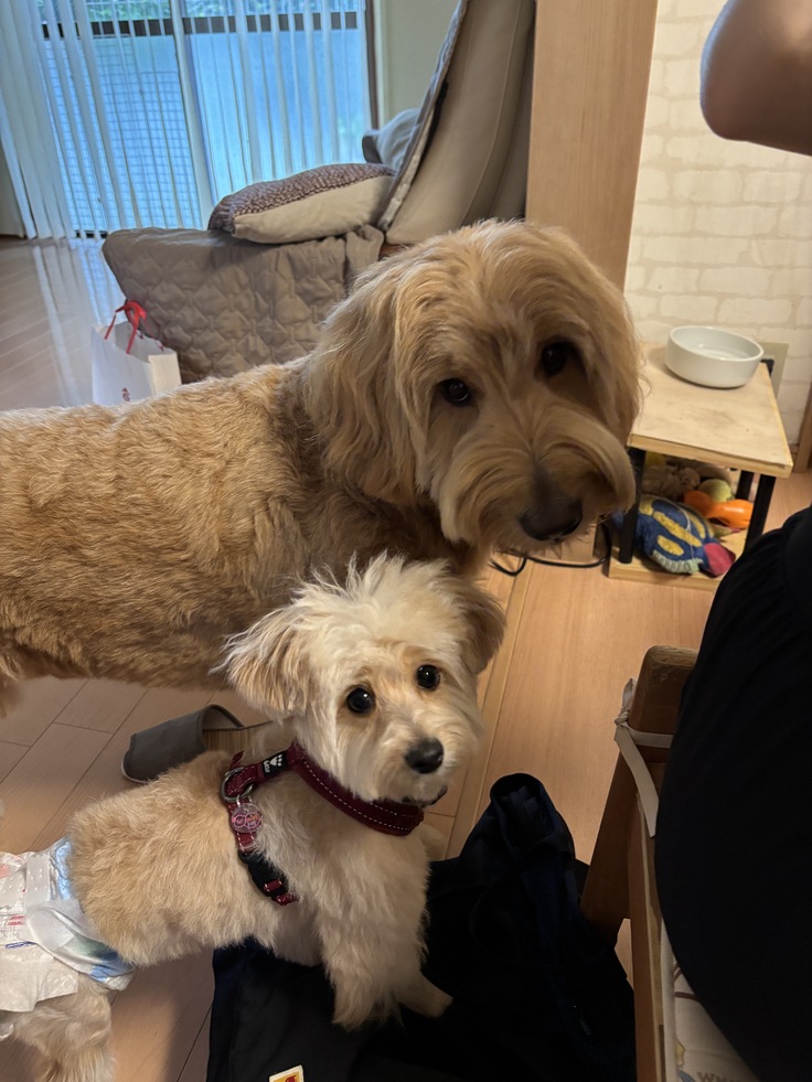 ◼︎手前のちびまるこ 改 波(なる)ちゃん、奥にいるのは、先住犬の海(かい)くん