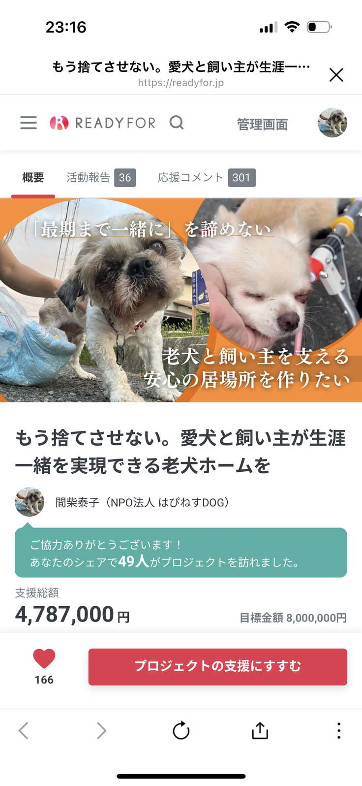 会う度に、老犬ホームやクラファンの事を聞いてくださって、皆さんが気にかけてくださってるのが、凄く嬉しいです!