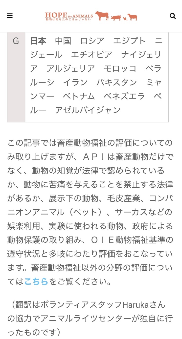 とにかく、日本はこんなにいろんな面で、先進国なつもりなのに、アニマルウェルフェアについては、最低レベルのGです。