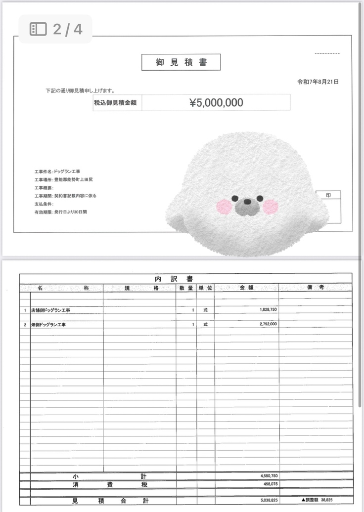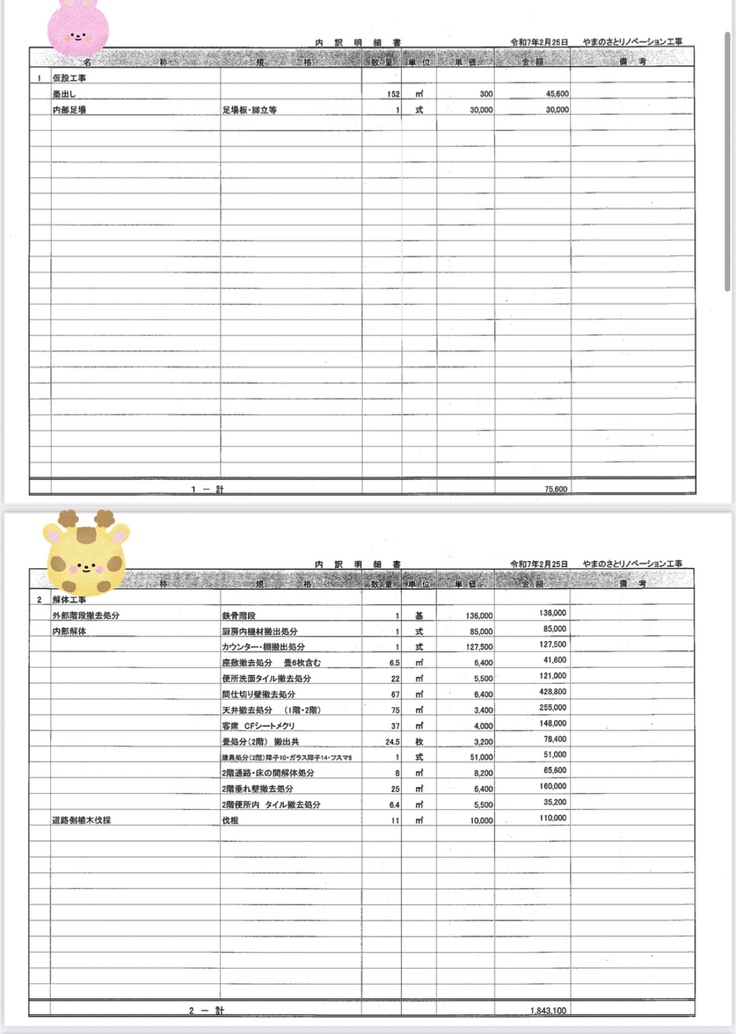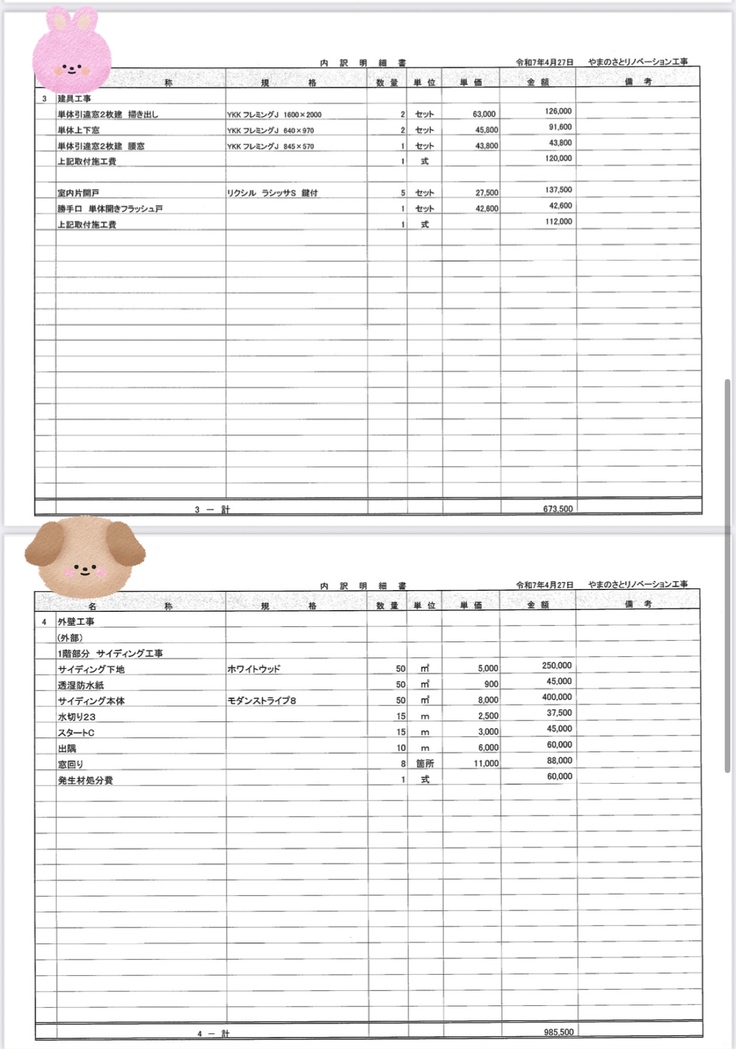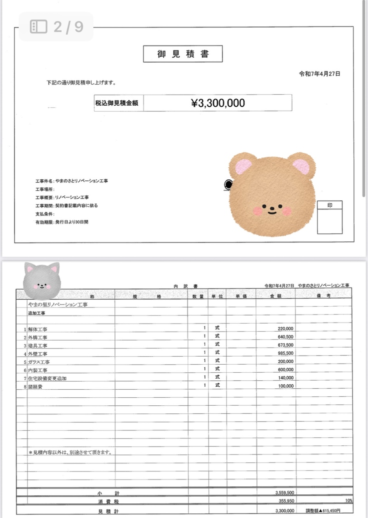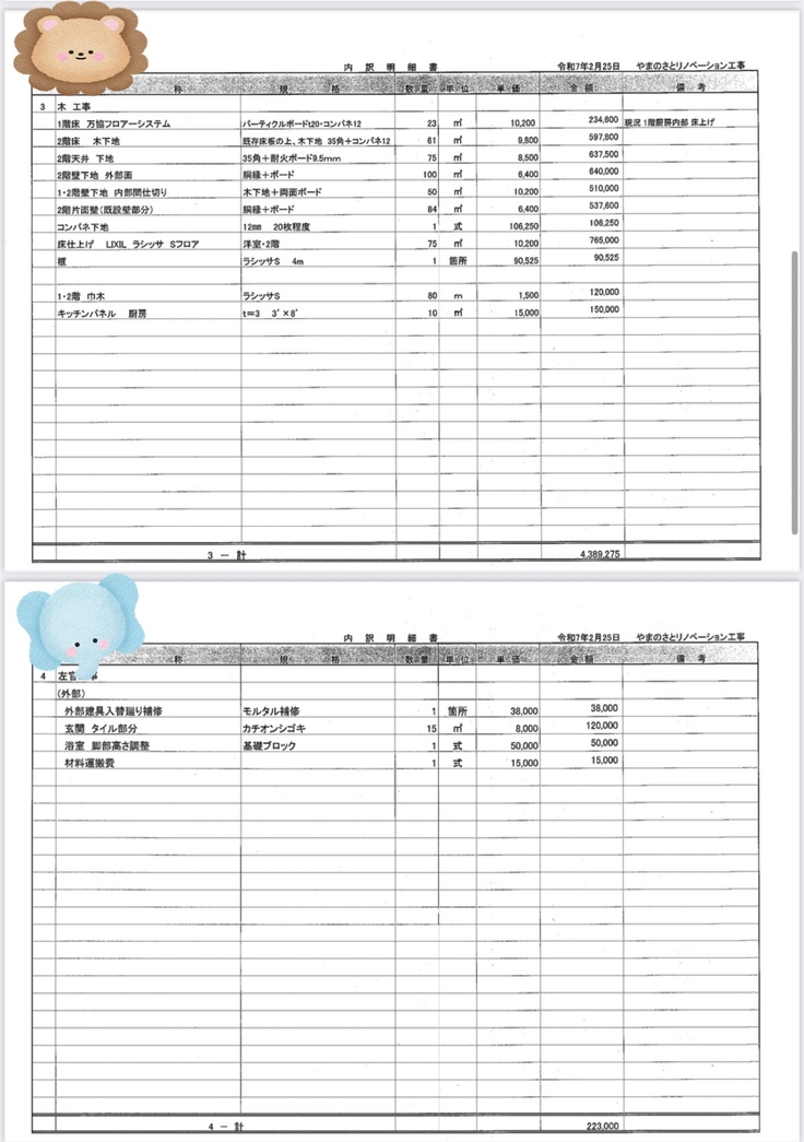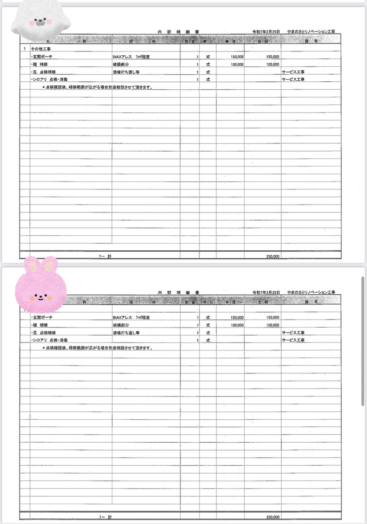 ↓工事始まってから、追加で修繕しないといけなくなった追加お見積もりです。