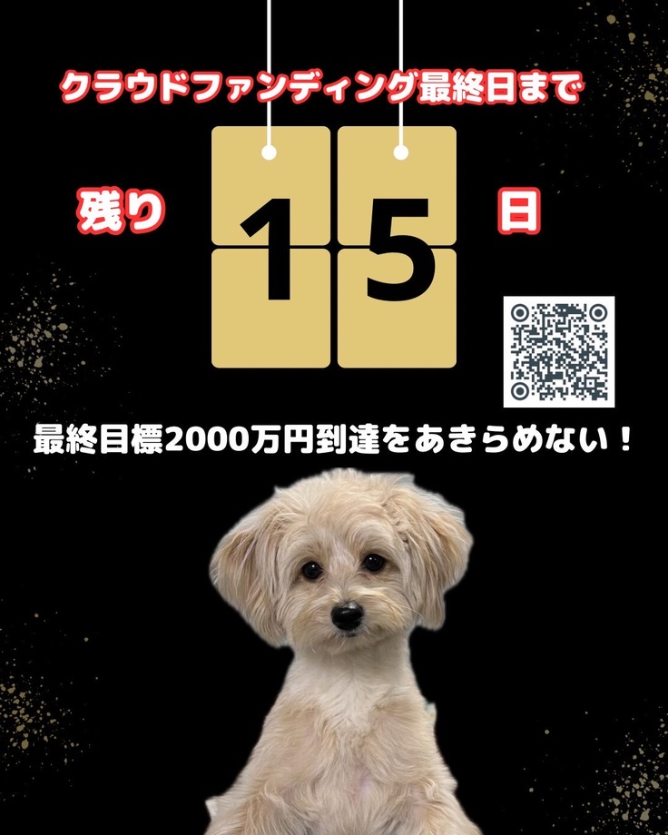 残り15日残されておりますが、私たちが目指す最終目標は2,000万円です!
