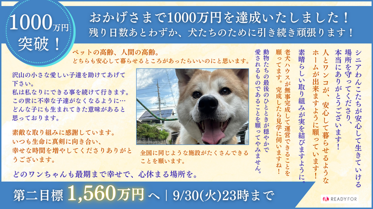 【1000万円突破!】たくさんの応援、本当にありがとうございます!