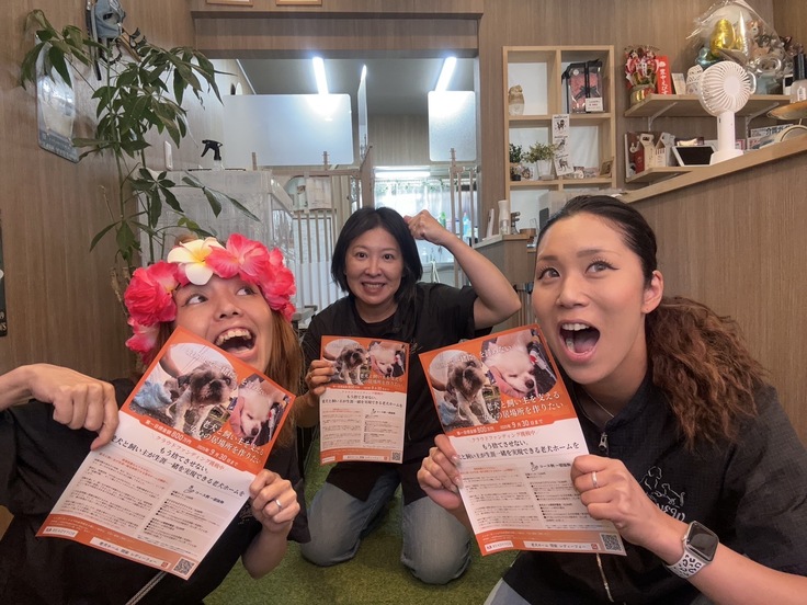 当店のお客様からはぴねすドッグさんと繋がりが出来て、代表の間柴さんと出会いボランティアトリミングをさせて頂いております!