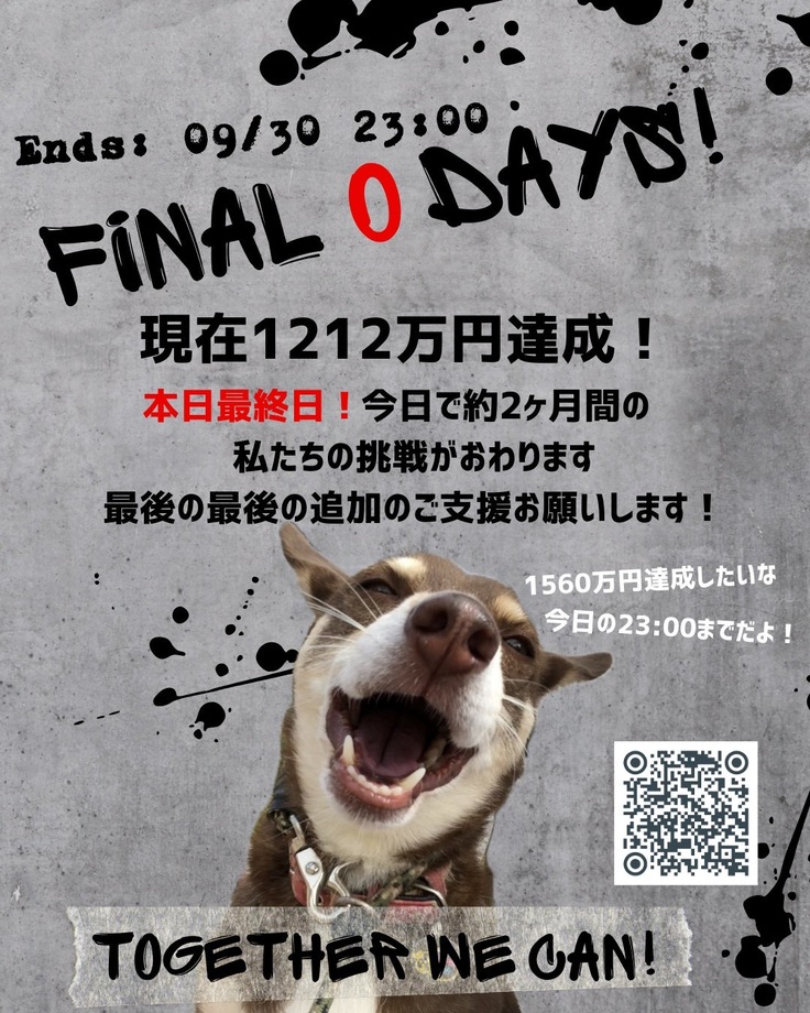 【最終日】最後の最後まで諦めません!最終目標2,000万円へ、ご支援をお願いします!