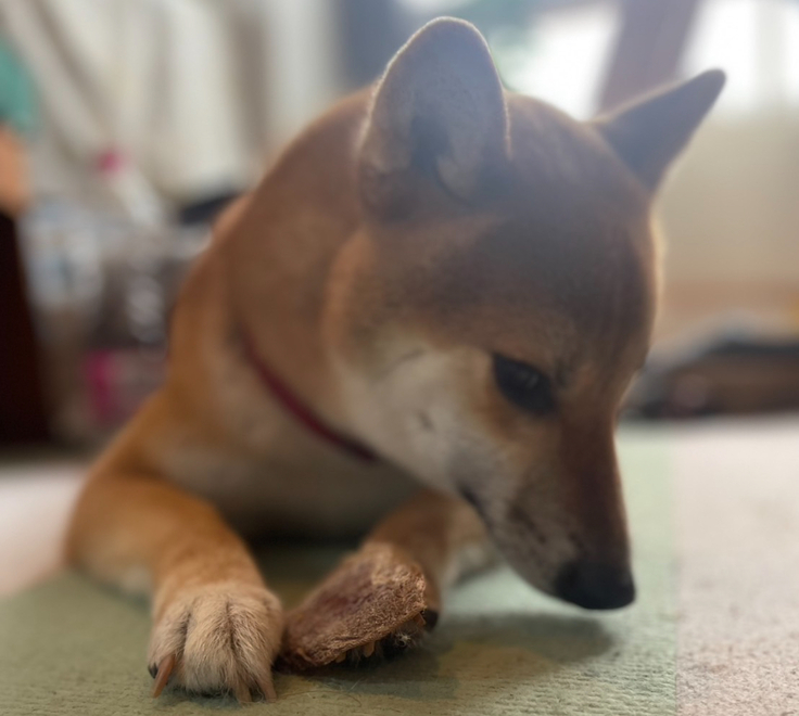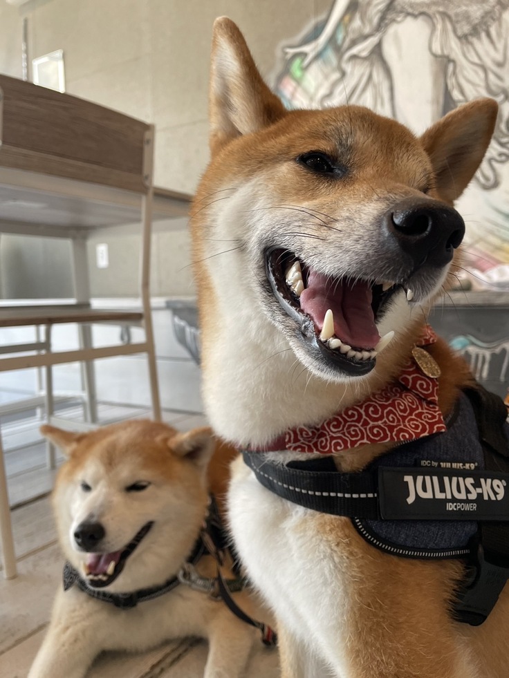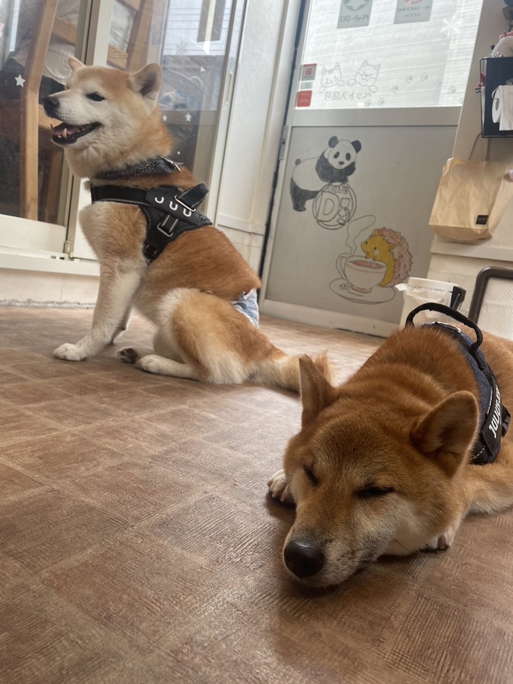いつもむすっとしてるけど、お尻をつけて寝に来たり、柔と遊べるようになったり。この子はやっとここまで変わりました。犬らしく暮らせているように思います。こもちづきは本当にかしこい子です。