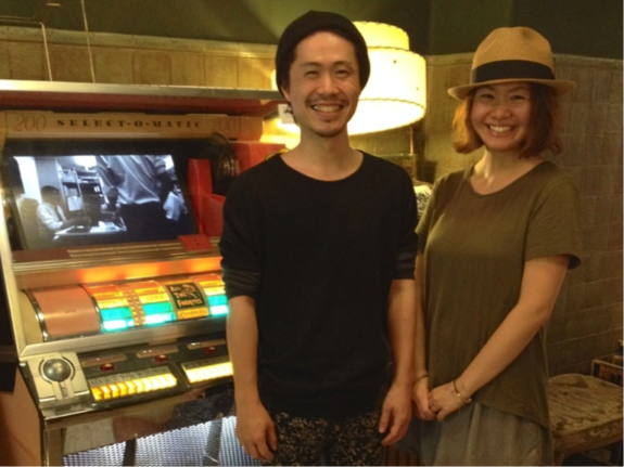 (八木氏の作品・ジュークボックスパソコンの前で婚約者と。)